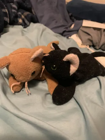 at first i was like super dysphoric because we got our hair cut yesterday so its even shorter now , but i just eventually stopped looking in the mirror & i was able to just let myself be . and it was super fun ! got tons of stuff too !! of course some pokemon stuff for spencer , because i think it i didnt he might fight me physically lol . but i got a dragonair plush because i think shes super cuteeee . also got some cat beanie babies bc we'll all love those ( but i didnt realize we already had both of those kinds >. < ) we also went to fivebelow & got LPS and stuff like that ! pics below ^- ^